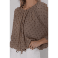Blouse van Poools. Deze luchtige blouse in een warme taupe tint is zo’n item dat je outfit meteen een zachte, vrouwelijke uitstraling geeft. De subtiele structuur met kleine reliëfbolletjes maakt ‘m nét even specialer, terwijl de losse fit heerlijk comfortabel draagt. De striksluiting aan de onderkant zorgt voor een speels bloezend effect.