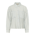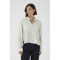 Blouse van Culture. Deze gestreepte blouse heeft een frisse, eigentijdse uitstraling dankzij de zachte kleurcombinatie en het speelse streeppatroon. De rechte, iets kortere pasvorm geeft het item een moderne twist, terwijl de klassieke kraag en knoopsluiting zorgen voor een tijdloos karakter. De borstzakken met horizontale strepen vormen een leuk contrast met de verticale lijnen en geven de blouse net dat extra detail. Een comfortabel en stijlvol item dat makkelijk te combineren is.
