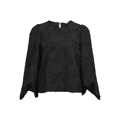 Top van Object. Deze zwarte top is een ware eyecatcher dankzij het prachtige bloemenpatroon in ton-sur-ton reliƫf. De licht glanzende stof en de volumineuze mouwen geven de top een chique en vrouwelijke uitstraling. Perfect voor een stijlvolle avondlook of een bijzondere gelegenheid.