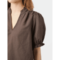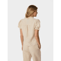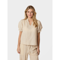 Blouse van merk Neo Noir. Deze luchtige blouse heeft een vrouwelijke en elegante uitstraling. De subtiele V-hals met opstaande ruchekraag geeft het ontwerp een verfijnd detail, terwijl de korte pofmouwen met elastische boord zorgen voor een speelse touch. Dankzij de soepele stof draagt de blouse heerlijk comfortabel en is hij perfect voor zowel casual als geklede momenten.