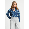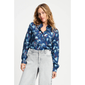Blouse van POM Amsterdam. Deze prachtige blouse valt op door de handgeschilderde blauwe print met frisse tinten lila en bordeaux. De blouse heeft een klassieke kraag, knoopsluiting en lange mouwen met manchetten. De soepelvallende viscose stof zorgt voor een elegante en comfortabele fit, perfect voor zowel werk als vrije tijd.