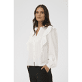 Blouse van Kaffe. Deze elegante witte blouse is een echte musthave met nét dat beetje extra. De vrouwelijke ruches langs de schouders geven een speelse, chique touch, terwijl de luchtige stof en de soepelvallende pasvorm zorgen voor een comfortabele fit. Perfect voor zowel een nette werklook als een stijlvolle outfit voor een etentje.