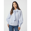 Blouse van Neo Noir. Deze lichtblauwe blouse met fijne streep is een echte klassieker met een vrouwelijke twist. De strik bij de hals geeft een elegante, speelse uitstraling en maakt dit item meteen bijzonder. De licht gepofte mouwen en de mooie manchetten zorgen voor een stijlvolle fit, terwijl de luchtige stof heerlijk draagt. Perfect voor een nette look, maar ook superleuk casual te combineren.