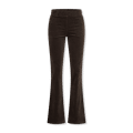 Broek van Helena Hart. Deze fluwelen broek is uitgevoerd in een diepe chocoladekleur en heeft een elegante, aangesloten pasvorm die uitloopt in een lichte flair. De zachte stretchvelours voelt comfortabel aan en zorgt voor een luxe uitstraling. De naaddetails aan de voorzijde geven het model een subtiel verlengend effect.