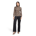 Coltrui van Betty Barclay. Deze trui met luipaardprint is een echte blikvanger en combineert comfort met stijl. De lichte stretchstof zorgt voor een mooie pasvorm en een prettig draaggevoel, terwijl de col een elegante, moderne look geeft. Perfect voor zowel casual als geklede gelegenheden.