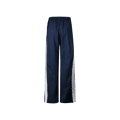 Broek van Poools. Deze navy broek met witte bies is dé perfecte mix van comfy en stijlvol. Door de wijde pijpen en de elastische tailleband zit hij heerlijk, terwijl de contrasterende zijbaan zorgt voor een sportieve, trendy uitstraling. Ideaal voor een casual dag, maar ook super leuk om chic te stylen met een blazer.