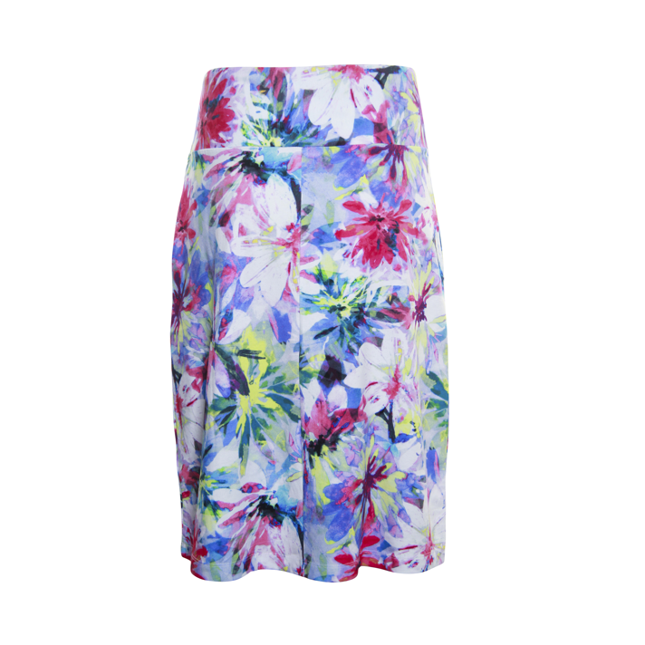 Een iets gerende rok met allover bloemenprint van het merk Roberto Sarto. Deze rok heeft een elastische boord en is gemaakt van een soepele viscose mix.
