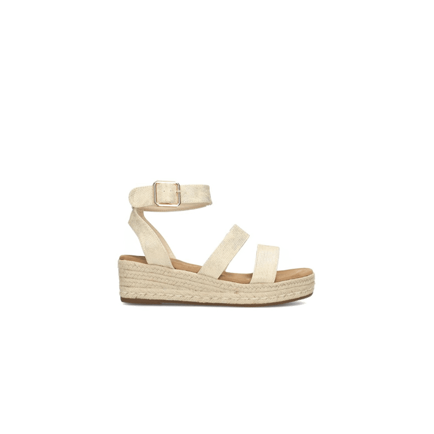 Sandalen van Posh in een zomerse naturel tint met een stijlvolle espadrillezool. Dit elegante model heeft meerdere bandjes over de voet en een verstelbaar enkelbandje met gesp, wat zorgt voor een goede pasvorm en een vrouwelijke uitstraling. De gevlochten zool geeft de sandaal een frisse, zomerse look.