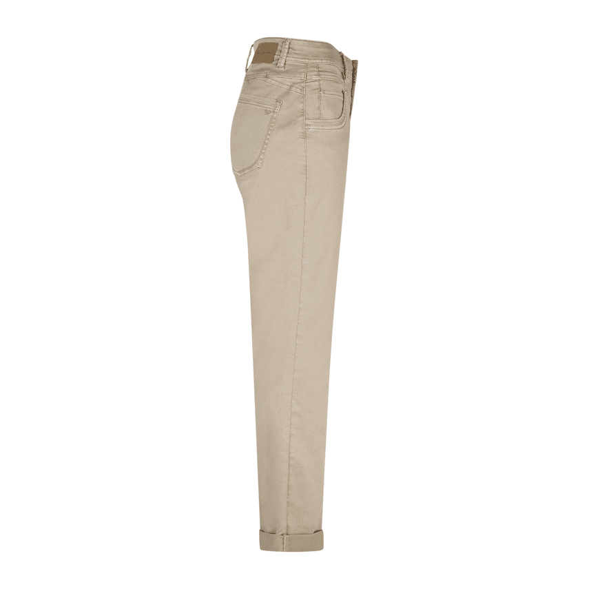 Details: zandkleurige denim, comfortabele stretch, tijdloze basic met nette afwerking