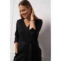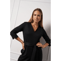 Jumpsuit van Studio Anneloes. Deze elegante zwarte jumpsuit is een echte klassieker met een moderne twist. De diepe V-hals, driekwartmouwen en wijde pijpen zorgen voor een vrouwelijke en flatterende uitstraling. De ceintuur in de taille accentueert het silhouet prachtig, terwijl de soepele travelkwaliteit garant staat voor optimaal draagcomfort.