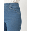 Broek van het merk Toni. Deze broek in een neutrale camel tint heeft een hoge taille en rechte pijpen. De zachte stretchkwaliteit en elastische tailleband zorgen voor een comfortabele pasvorm. Het kleine rode hartje bij de tailleband geeft een herkenbaar detail.