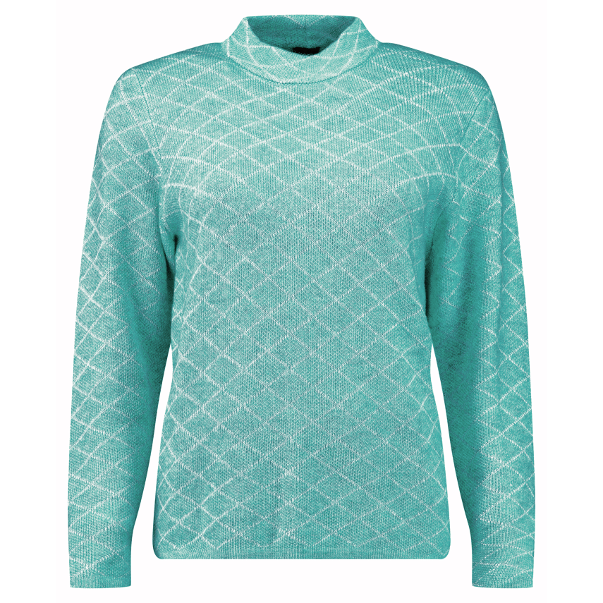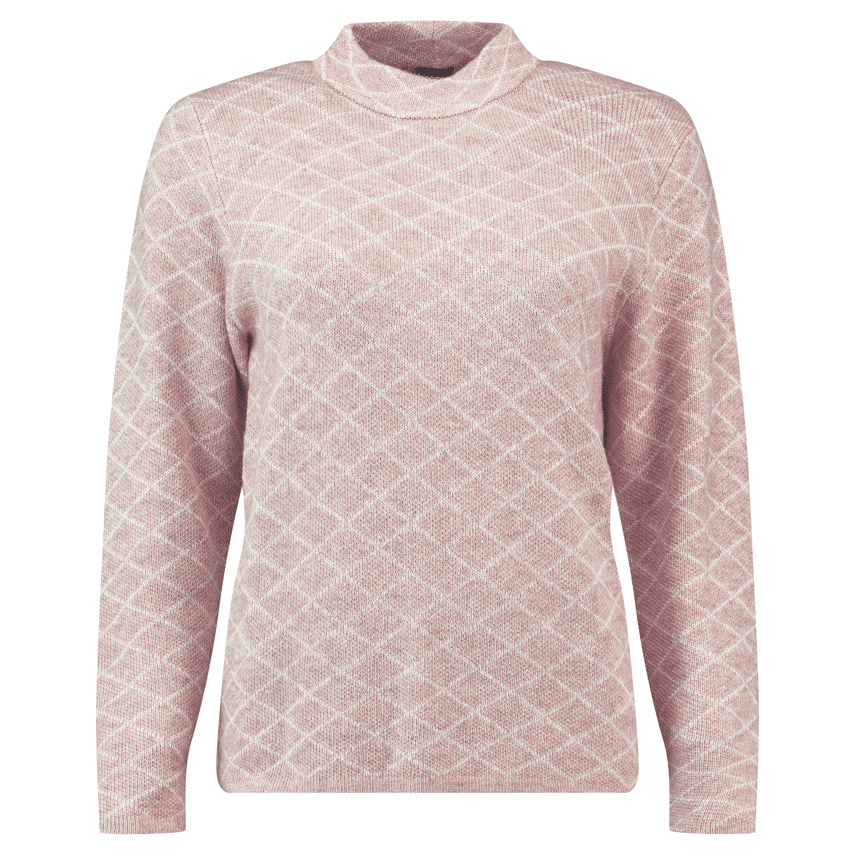 Fijn gebreide trui met turtlenek halsje en wiebertjes print. Deze trui hebben wij in 3 verschillende kleuren.