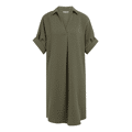 Jurk van het merk YAYA in een stijlvolle olijfgroene kleur met een minimalistische en moderne uitstraling. Dit losvallende model is voorzien van een kraag en een V-hals voor een elegante, casual look. De korte mouwen met omslag geven de jurk een nonchalant karakter, terwijl de subtiele plooi op de rug zorgt voor extra bewegingsvrijheid en een mooie valling. De rechte, iets langere lengte maakt deze jurk zowel comfortabel als veelzijdig.