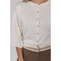Details: zachte ecru kleur, naturel knoopjes, fijne boorden aan mouwen en onderkant