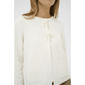 Cardigan van Kaffe in een zachte off-white tint die moeiteloos past bij elke voorjaarslook. Het fijne breisel voelt comfortabel aan en heeft een vrouwelijke uitstraling dankzij de speelse striksluiting aan de voorzijde. De ronde hals en de rechte pasvorm maken dit vestje tijdloos en makkelijk te combineren, terwijl de opgestikte zakken zorgen voor een casual touch. Een item dat je er snel bij pakt, of je nu naar kantoor gaat of een dagje op pad bent.